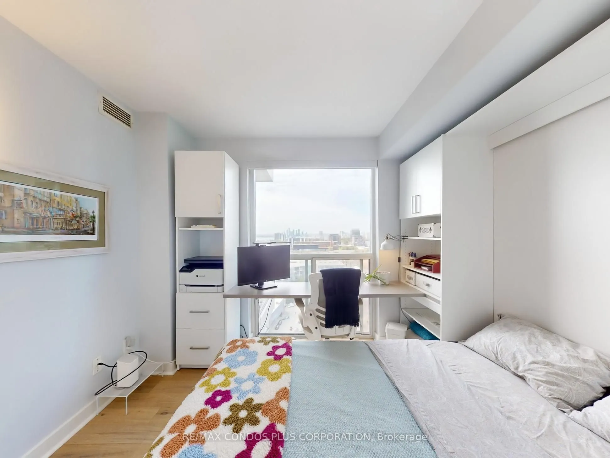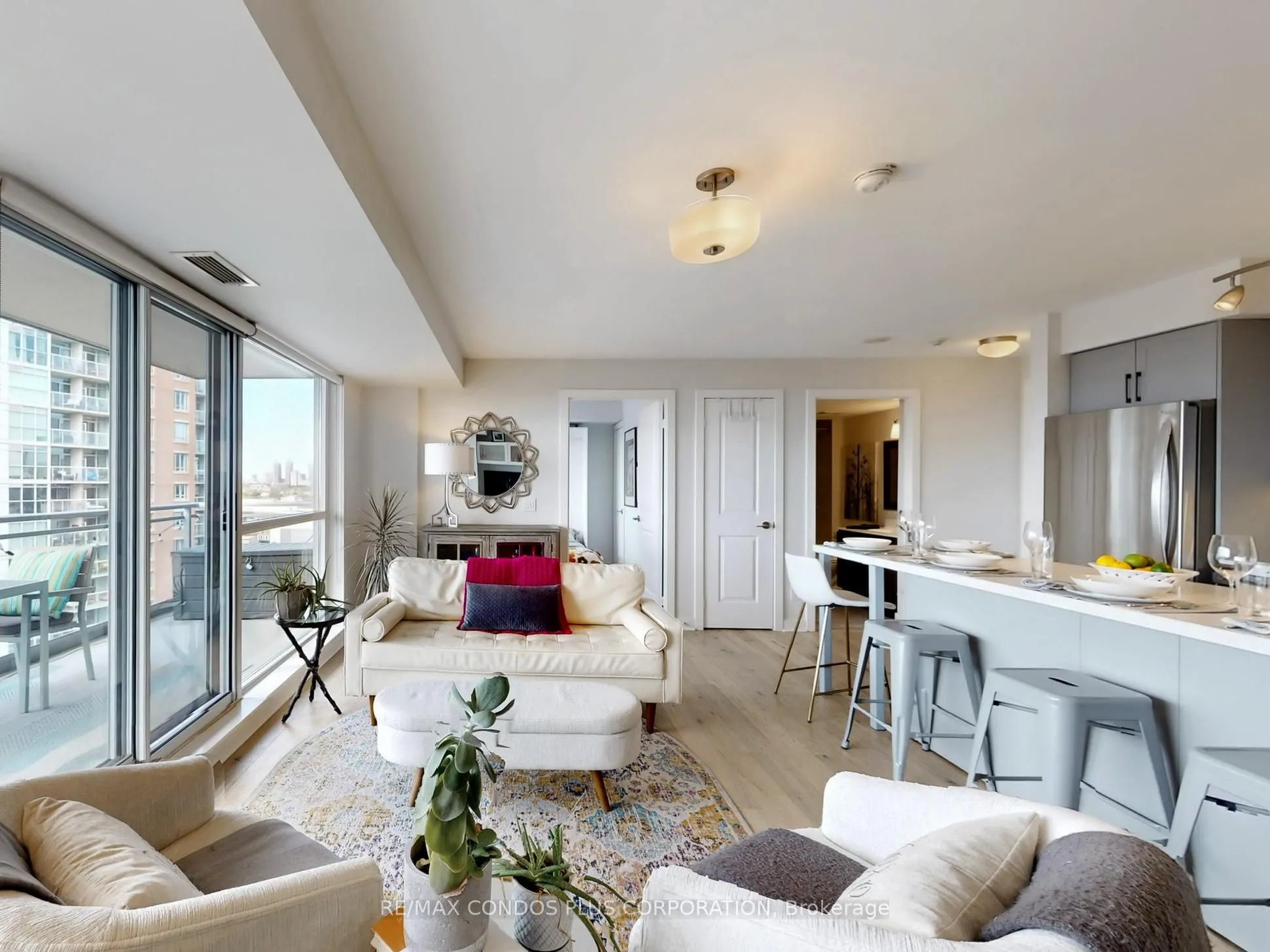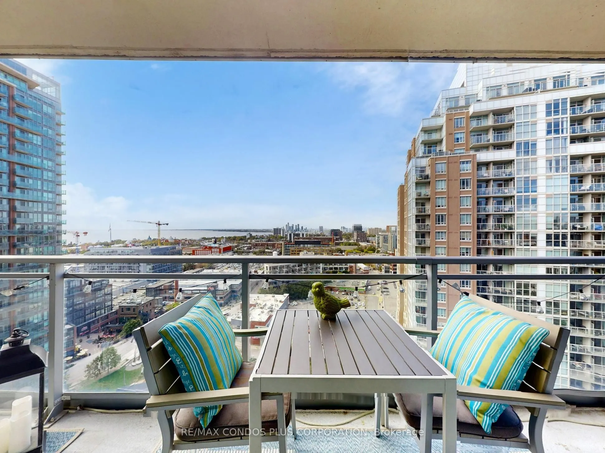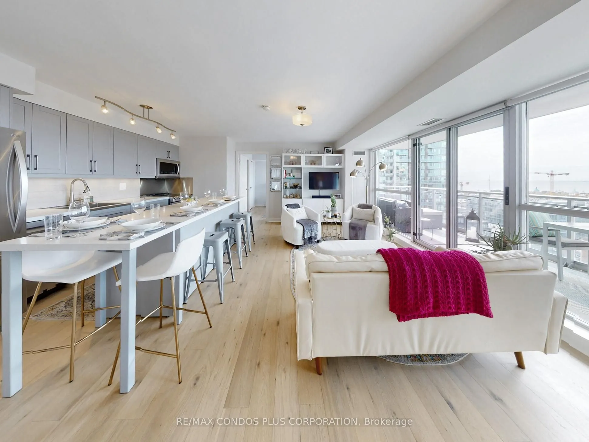 Discover the perfect blend of style, comfort, and convenience with this beautifully appointed 2-bedroom, 2-bathroom condominium in the heart of Liberty Village. Featuring a highly desirable wide split-bedroom floorplan, this residence offers exceptional functionality and privacy for residents and gu...ests. Bathed in natural light, the open-concept living and dining area is designed for modern urban living, with warm hardwood flooring throughout, smooth-finished ceilings, and expansive floor-to-ceiling windows that frame stunning lake vistas. The updated gourmet kitchen is as elegant as it is practical, boasting a large island with breakfast bar, premium stainless steel appliances, sleek quartz countertops, and ample storage - perfect for everyday cooking and entertaining alike. Step onto your spacious balcony and enjoy unobstructed views of Toronto's waterfront - a rare urban retreat right in the city. The spacious primary bedroom offers a peaceful sanctuary featuring a walk-in closet and 3-pc ensuite. The second bedroom offers incredible versatility - ideal for family, guests, a home office, or a media room - and is conveniently located next to a full bathroom with a deep soaker tub for ultimate relaxation. Additional highlights include a parking space close to the elevators and a storage locker conveniently located on the ground floor of the building. Residents enjoy access to an impressive suite of luxury amenities, including a well equipped fitness centre, indoor pool, steam room, billiards room, party room, theatre room, cyber lounge, and 24-hour concierge service - all within a secure, meticulously maintained community. Situated in one of Toronto's most sought-after neighbourhoods, this exceptional residence is just steps from popular cafés and restaurants, trendy boutiques, lush parks, and convenient easily accessible public transit.