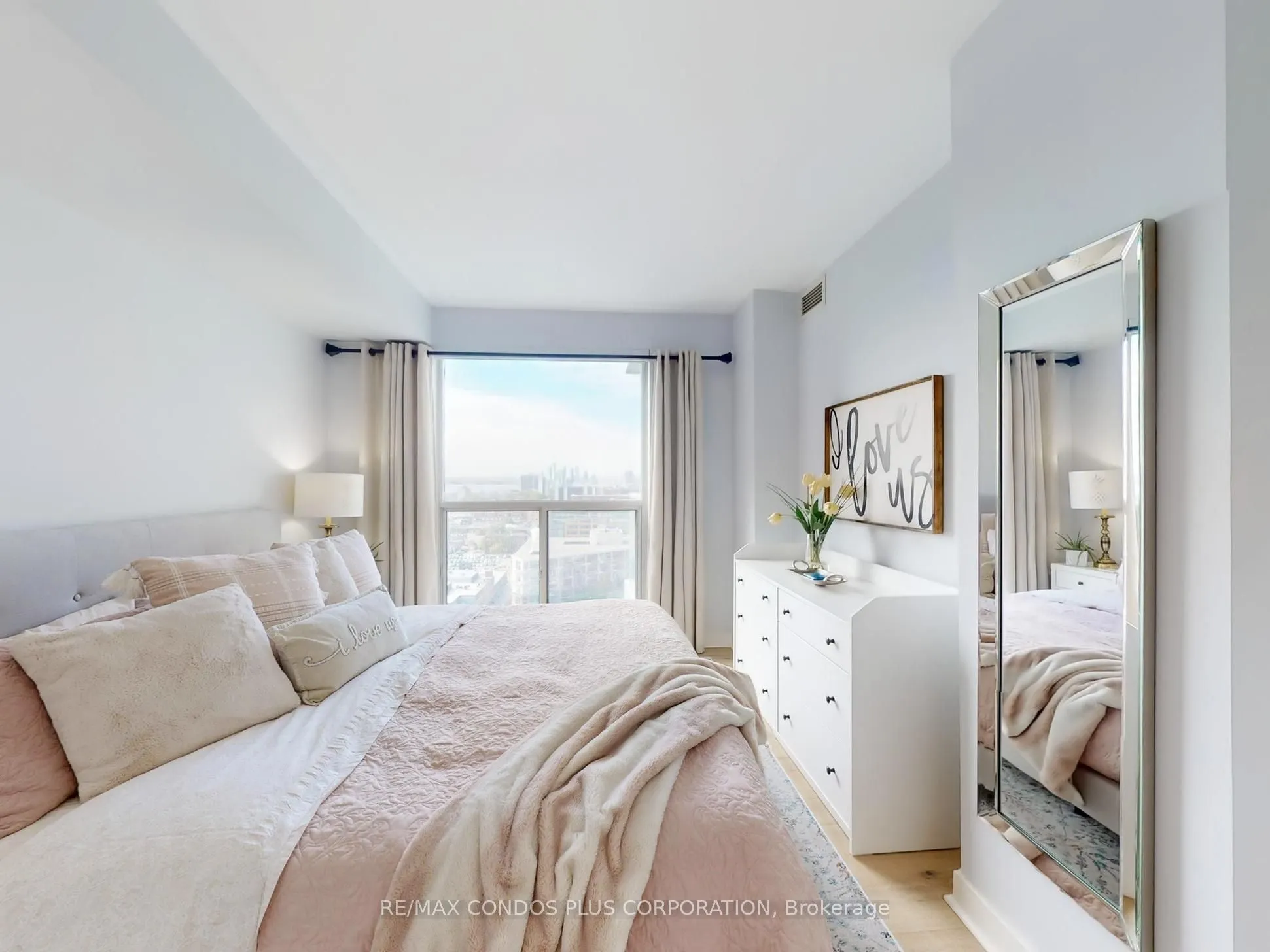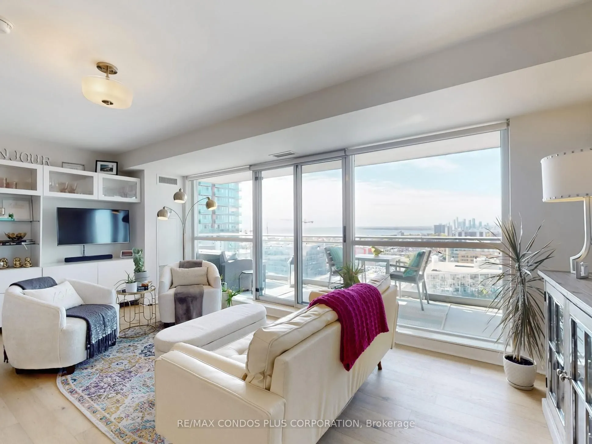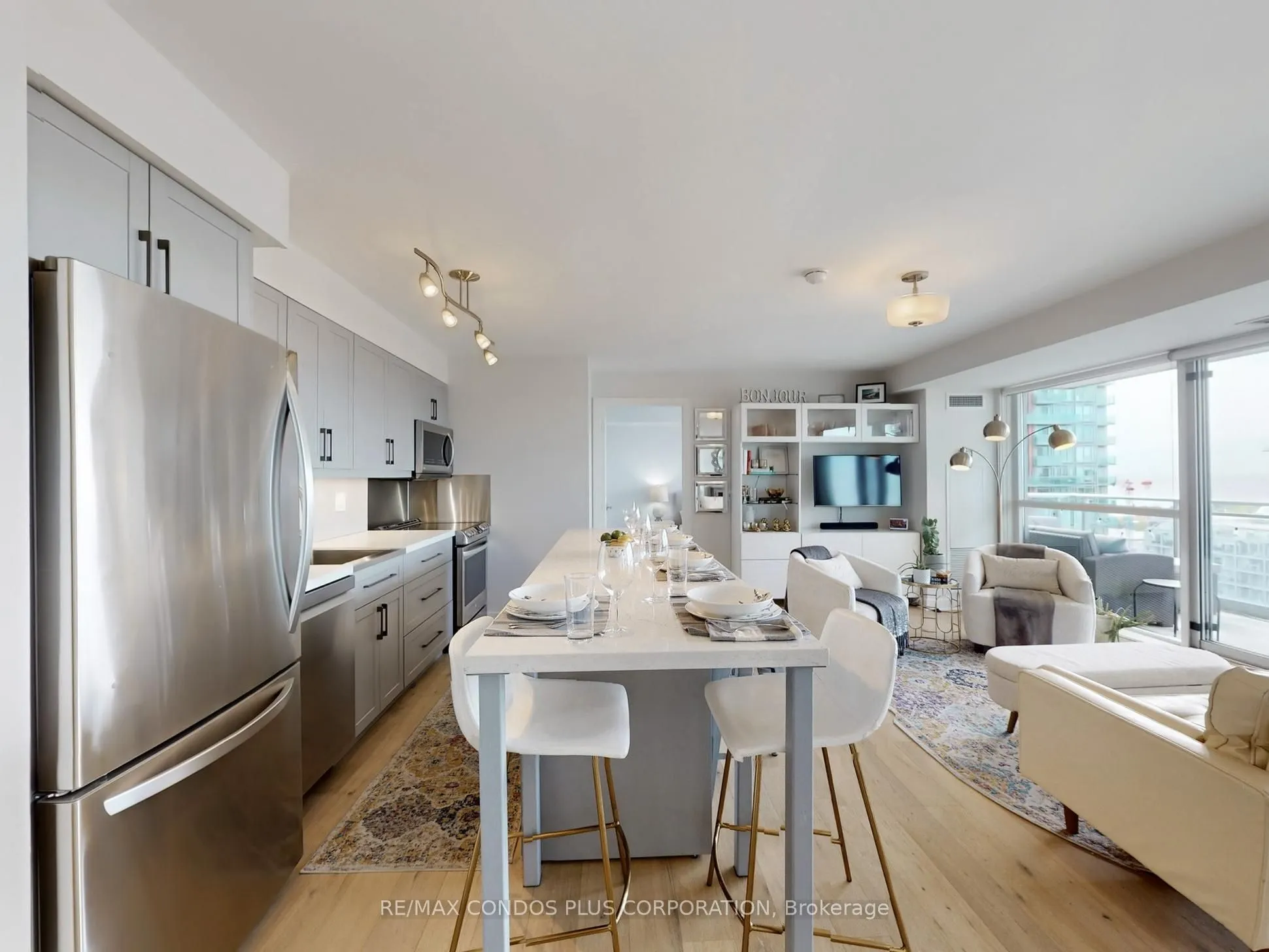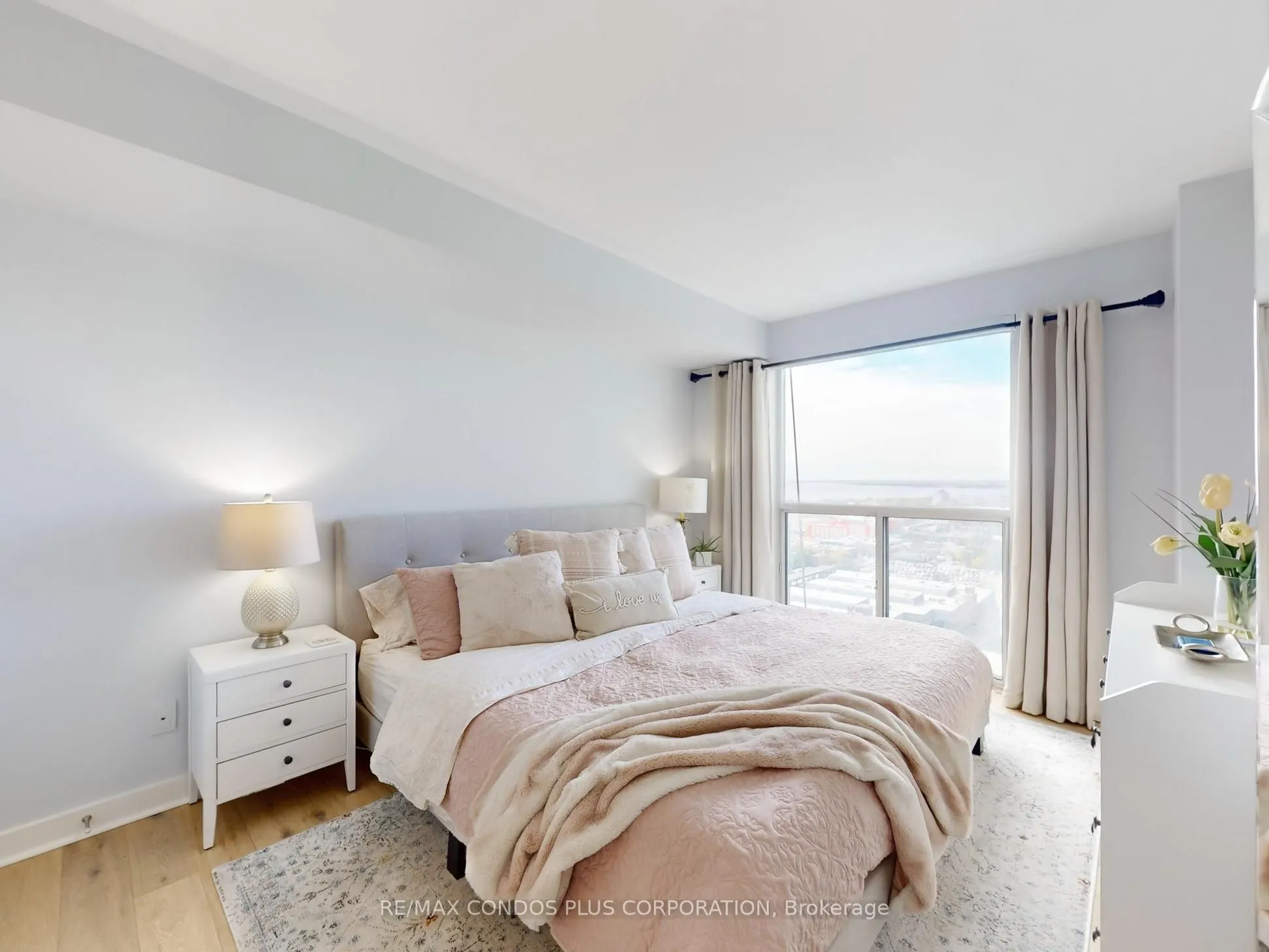 Discover the perfect blend of style, comfort, and convenience with this beautifully appointed 2-bedroom, 2-bathroom condominium in the heart of Liberty Village. Featuring a highly desirable wide split-bedroom floorplan, this residence offers exceptional functionality and privacy for residents and gu...ests. Bathed in natural light, the open-concept living and dining area is designed for modern urban living, with warm hardwood flooring throughout, smooth-finished ceilings, and expansive floor-to-ceiling windows that frame stunning lake vistas. The updated gourmet kitchen is as elegant as it is practical, boasting a large island with breakfast bar, premium stainless steel appliances, sleek quartz countertops, and ample storage - perfect for everyday cooking and entertaining alike. Step onto your spacious balcony and enjoy unobstructed views of Toronto's waterfront - a rare urban retreat right in the city. The spacious primary bedroom offers a peaceful sanctuary featuring a walk-in closet and 3-pc ensuite. The second bedroom offers incredible versatility - ideal for family, guests, a home office, or a media room - and is conveniently located next to a full bathroom with a deep soaker tub for ultimate relaxation. Additional highlights include a parking space close to the elevators and a storage locker conveniently located on the ground floor of the building. Residents enjoy access to an impressive suite of luxury amenities, including a well equipped fitness centre, indoor pool, steam room, billiards room, party room, theatre room, cyber lounge, and 24-hour concierge service - all within a secure, meticulously maintained community. Situated in one of Toronto's most sought-after neighbourhoods, this exceptional residence is just steps from popular cafés and restaurants, trendy boutiques, lush parks, and convenient easily accessible public transit.