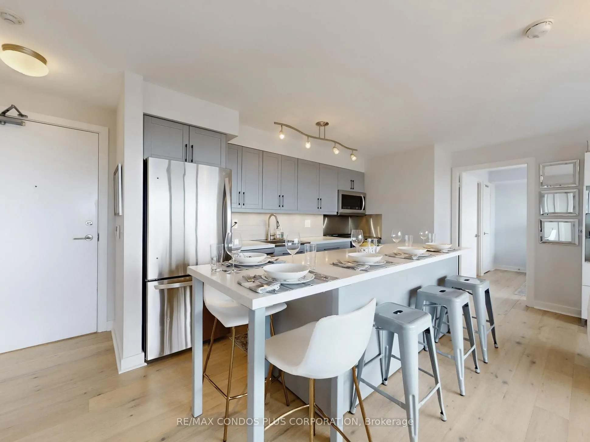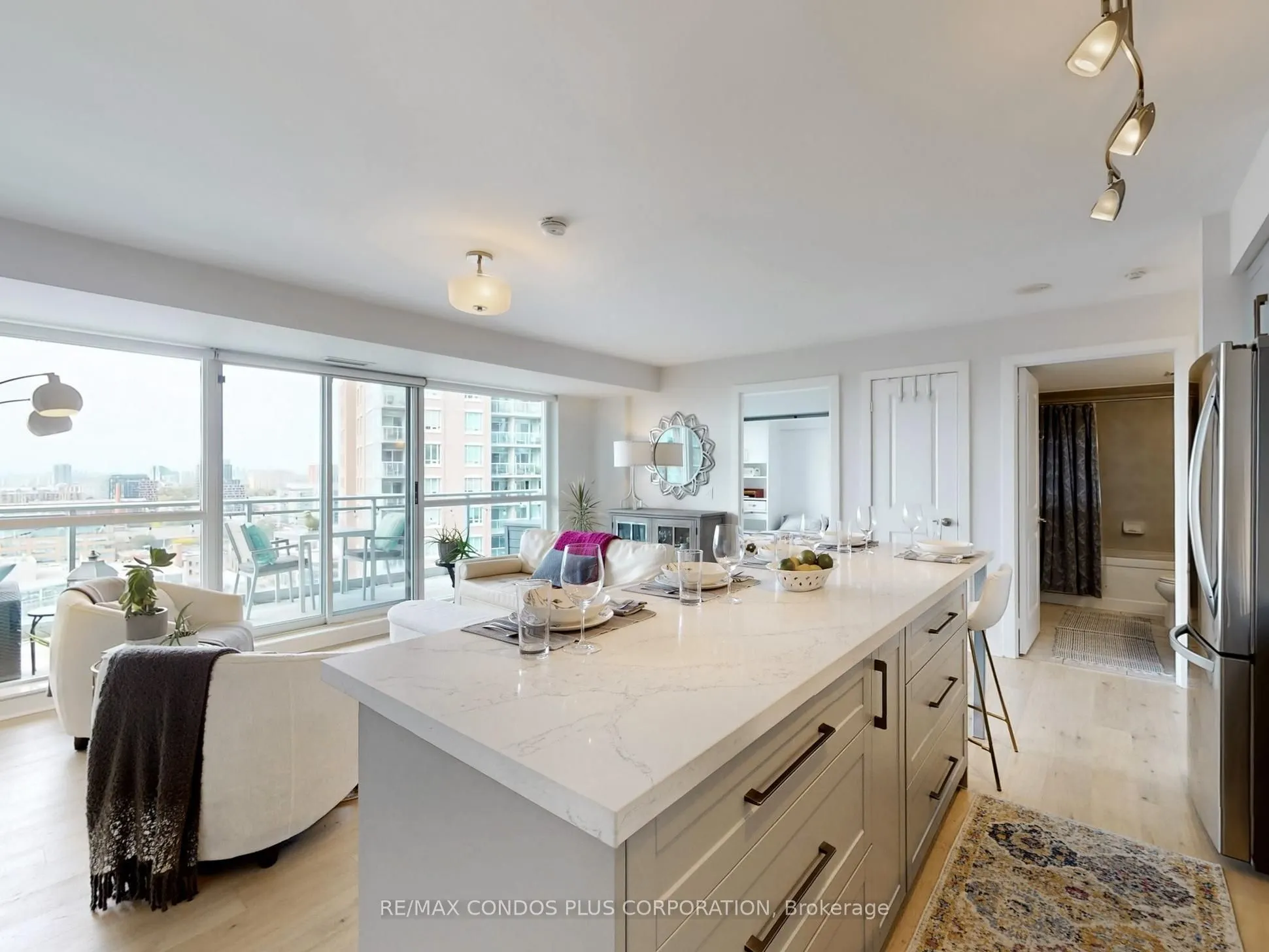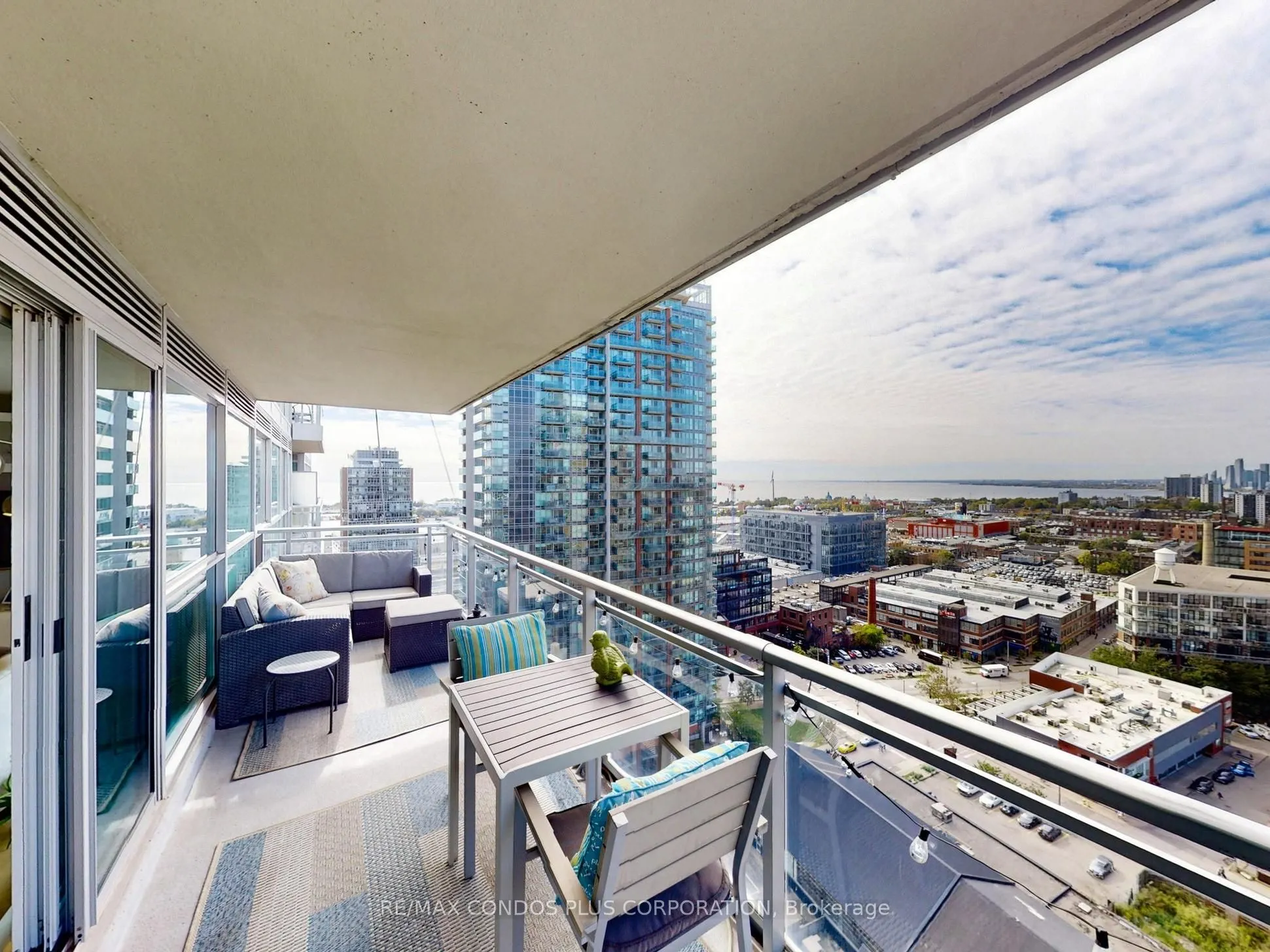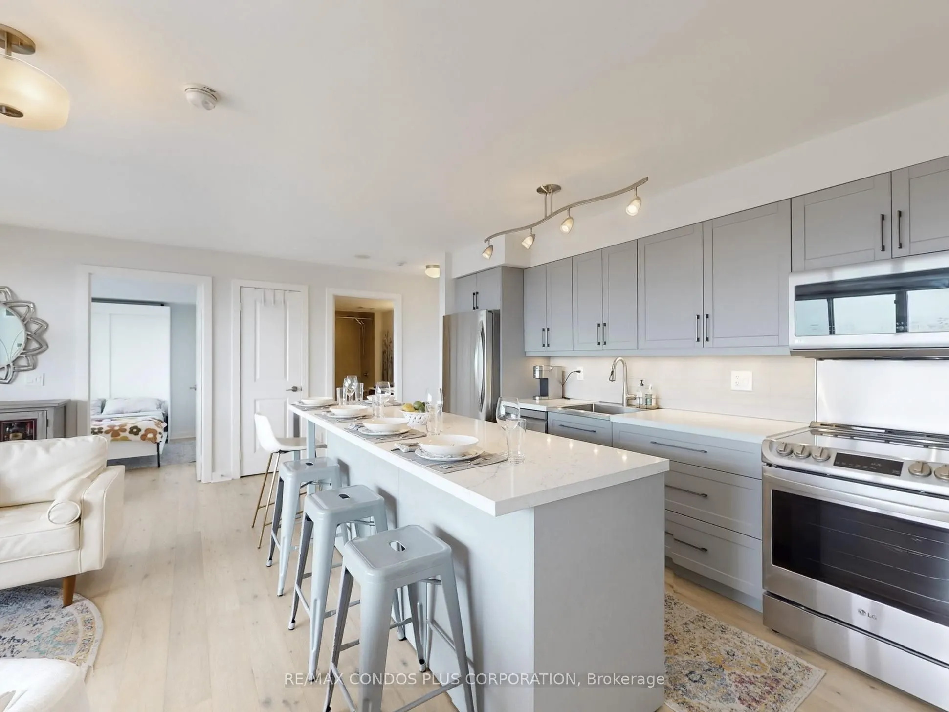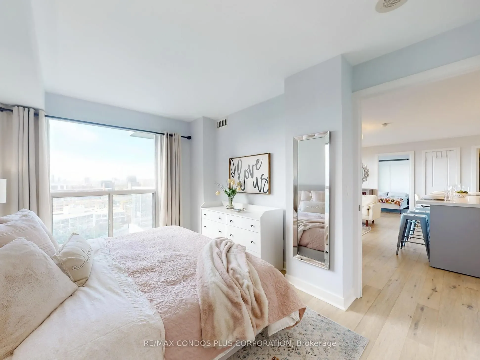 Discover the perfect blend of style, comfort, and convenience with this beautifully appointed 2-bedroom, 2-bathroom condominium in the heart of Liberty Village. Featuring a highly desirable wide split-bedroom floorplan, this residence offers exceptional functionality and privacy for residents and gu...ests. Bathed in natural light, the open-concept living and dining area is designed for modern urban living, with warm hardwood flooring throughout, smooth-finished ceilings, and expansive floor-to-ceiling windows that frame stunning lake vistas. The updated gourmet kitchen is as elegant as it is practical, boasting a large island with breakfast bar, premium stainless steel appliances, sleek quartz countertops, and ample storage - perfect for everyday cooking and entertaining alike. Step onto your spacious balcony and enjoy unobstructed views of Toronto's waterfront - a rare urban retreat right in the city. The spacious primary bedroom offers a peaceful sanctuary featuring a walk-in closet and 3-pc ensuite. The second bedroom offers incredible versatility - ideal for family, guests, a home office, or a media room - and is conveniently located next to a full bathroom with a deep soaker tub for ultimate relaxation. Additional highlights include a parking space close to the elevators and a storage locker conveniently located on the ground floor of the building. Residents enjoy access to an impressive suite of luxury amenities, including a well equipped fitness centre, indoor pool, steam room, billiards room, party room, theatre room, cyber lounge, and 24-hour concierge service - all within a secure, meticulously maintained community. Situated in one of Toronto's most sought-after neighbourhoods, this exceptional residence is just steps from popular cafés and restaurants, trendy boutiques, lush parks, and convenient easily accessible public transit.