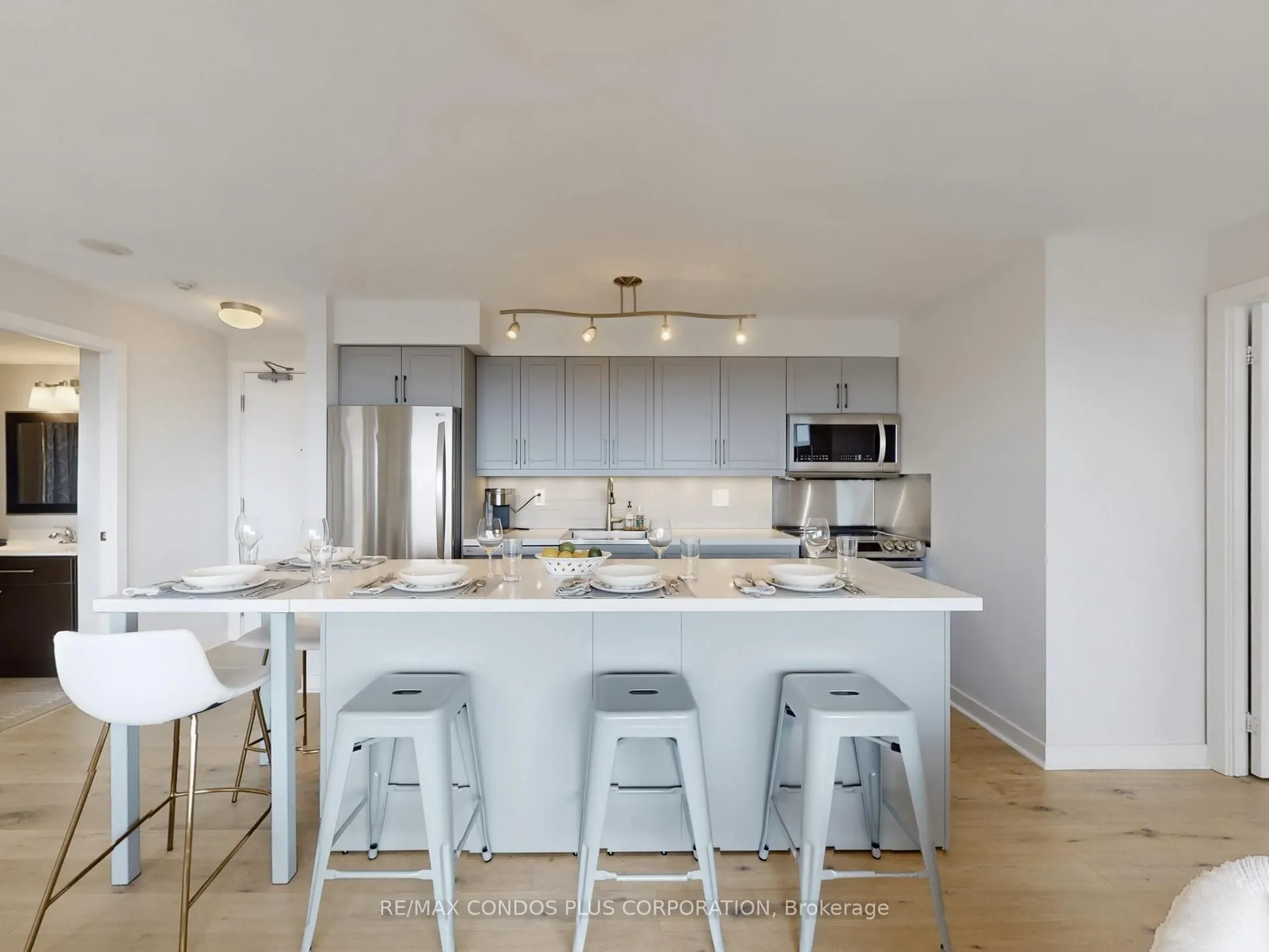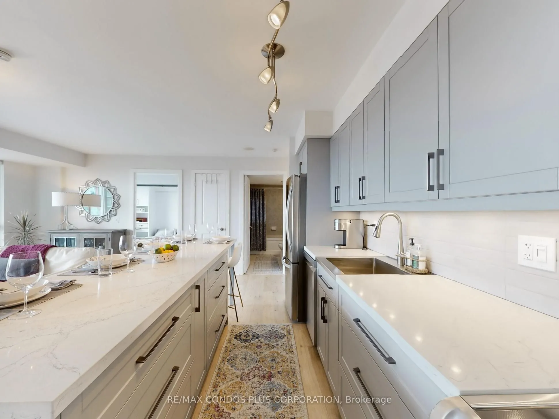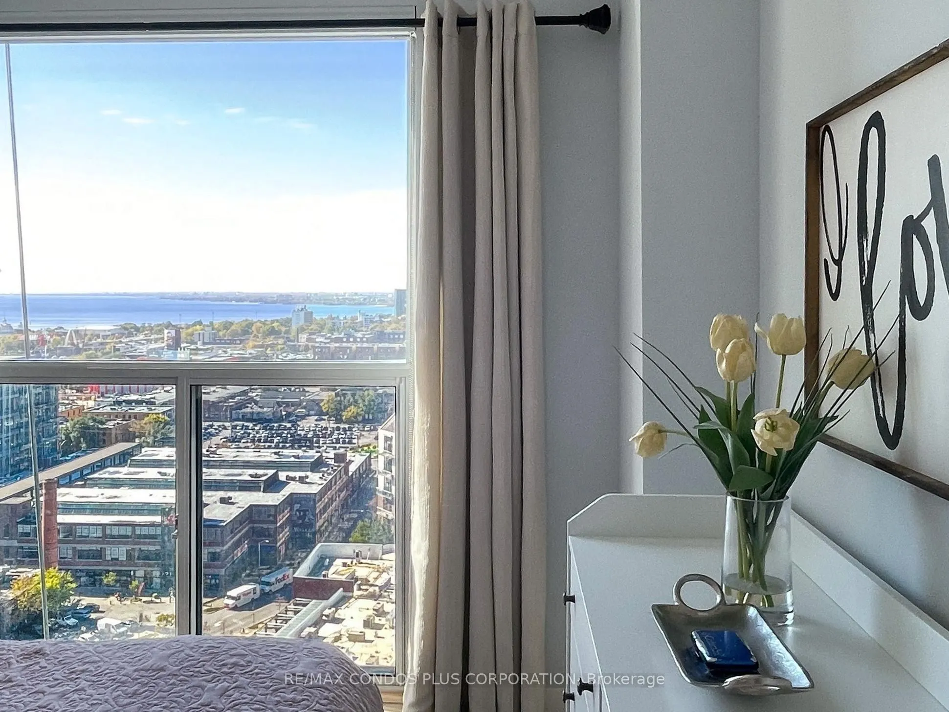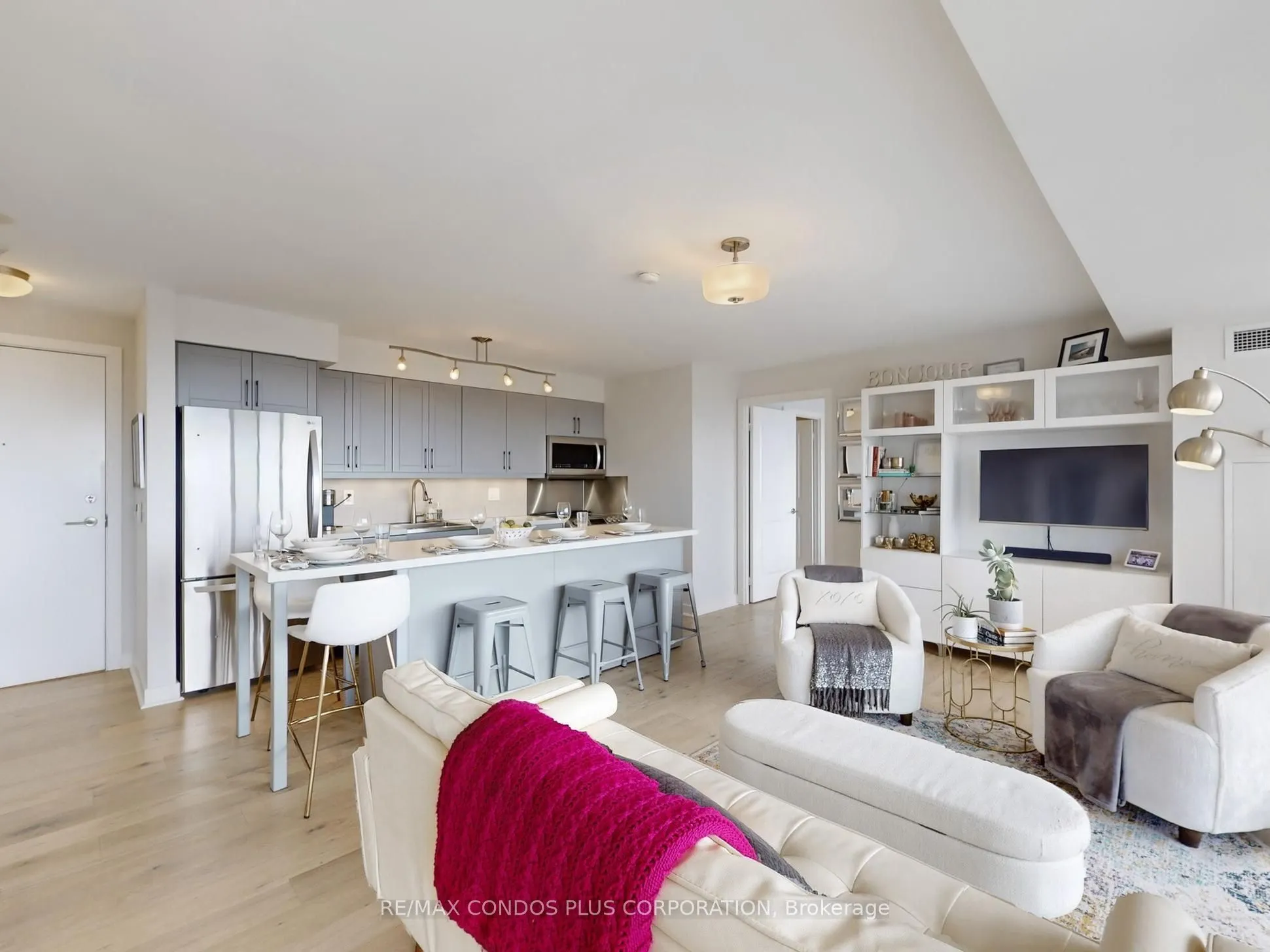 Discover the perfect blend of style, comfort, and convenience with this beautifully appointed 2-bedroom, 2-bathroom condominium in the heart of Liberty Village. Featuring a highly desirable wide split-bedroom floorplan, this residence offers exceptional functionality and privacy for residents and gu...ests. Bathed in natural light, the open-concept living and dining area is designed for modern urban living, with warm hardwood flooring throughout, smooth-finished ceilings, and expansive floor-to-ceiling windows that frame stunning lake vistas. The updated gourmet kitchen is as elegant as it is practical, boasting a large island with breakfast bar, premium stainless steel appliances, sleek quartz countertops, and ample storage - perfect for everyday cooking and entertaining alike. Step onto your spacious balcony and enjoy unobstructed views of Toronto's waterfront - a rare urban retreat right in the city. The spacious primary bedroom offers a peaceful sanctuary featuring a walk-in closet and 3-pc ensuite. The second bedroom offers incredible versatility - ideal for family, guests, a home office, or a media room - and is conveniently located next to a full bathroom with a deep soaker tub for ultimate relaxation. Additional highlights include a parking space close to the elevators and a storage locker conveniently located on the ground floor of the building. Residents enjoy access to an impressive suite of luxury amenities, including a well equipped fitness centre, indoor pool, steam room, billiards room, party room, theatre room, cyber lounge, and 24-hour concierge service - all within a secure, meticulously maintained community. Situated in one of Toronto's most sought-after neighbourhoods, this exceptional residence is just steps from popular cafés and restaurants, trendy boutiques, lush parks, and convenient easily accessible public transit.
