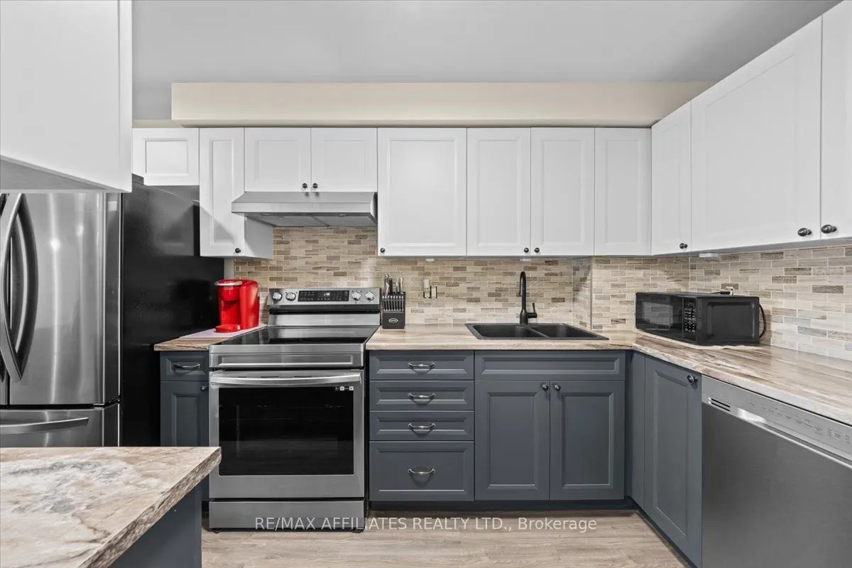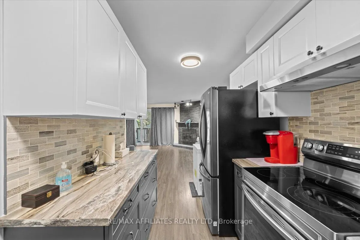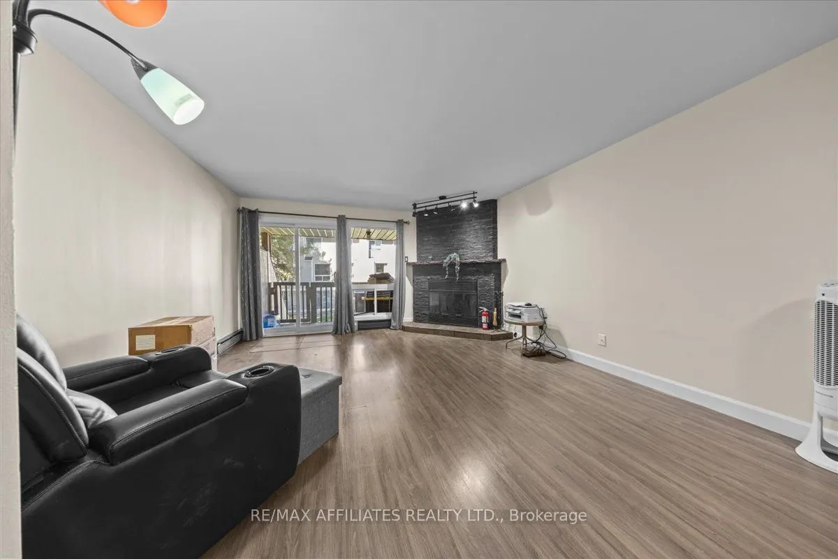 Stylishly Updated & Ready to Move InThis two-level stacked condo blends modern updates with a bright, airy feel, right across from schools and peaceful greenspace. Step into an inviting foyer with tiled floors and a handy powder room before entering the open main level. The renovated kitchen shines ...with stainless steel appliances (2024) and a chic stone backsplash, while the adjoining living room offers a cozy wood-burning fireplace and walk-out deck perfect for morning coffee or evening sunsets.Downstairs, the spacious primary bedroom offers a full wall of closets, with a well-sized second bedroom nearby. A four-piece bath and dedicated laundry room add everyday convenience.Set in a prime location, you're just a short stroll to the river, recreation facilities, shopping, and transit. Everything you need is at your doorstep. An ideal combination of style, comfort, and unbeatable walk ability this one is not to be missed! Professionally Painted