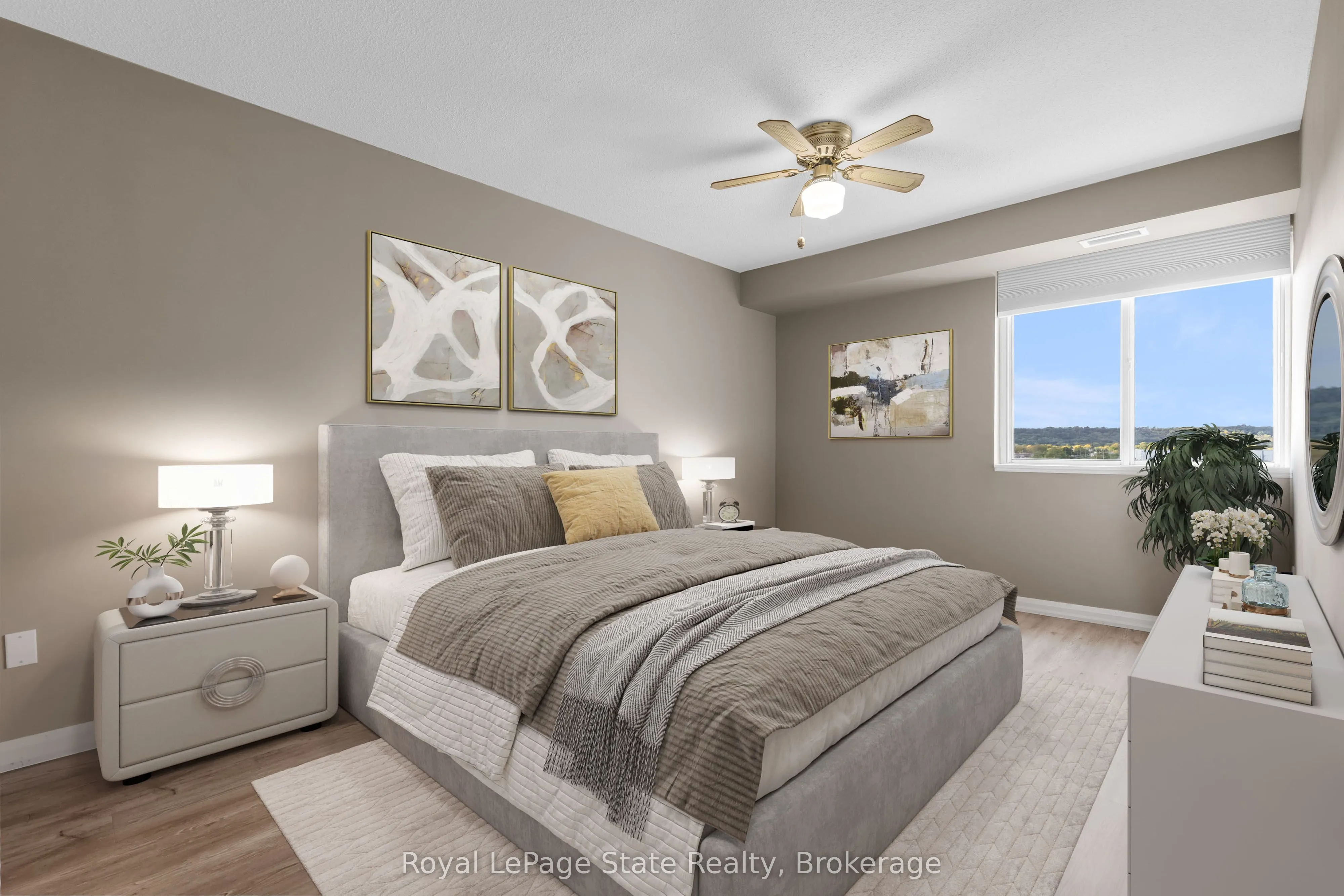 LAKE FRONT CONDO IN PRIME STONEY CREEK LOCATION! Bright and Spacious (1298 Sq Ft), 3 Bedroom, 2 Bathrooms, with a Big (21 x 7 feet) Private Balcony, 2 Walk in Closets, In suite Laundry Rm, Large Living Room with New Electric Fireplace, Big Kitchen with New pot light Ceiling and a separate Dining Rm.... Recently installed Luxury Vinyl Flooring, Baseboards, Trim, New Electrical Outlets and Door Levers throughout(all done in 2023). The Suite also includes 1 Underground Parking Spot and 1 Storage Unit. CONDO FEES INCLUDES ALL UTILITIES: Heat, Hydro, Air Conditioning, Water, High Speed Internet, TV package, Exterior Maintenance, and Building Insurance. Residents and their Guests can also enjoy many AMENITIES: Heated Outdoor Pool, BBQ's, Picnic Tables, Seating area, Gym, Sauna, Party Rm, Library, Wood Shop, Bike Rm, Car Wash, and Visitors Parking, THE BAYLINER is Quiet, Clean and Meticulously kept inside & out. Winner of the 2025 Trillium Award for its Beautifully Manicured Grounds, Majestic Trees, and a Backyard Lake. EXCELLENT LOCATION!!! Quick access to the QEW Toronto, Niagara, The Linc, New Go Station, and Public Transit. Perfectly settled near Parks, Waterfront Trails, Beaches, Pickle ball courts, Cricket fields, Malls, Shops, Restaurants, Local Cafe's, Schools, and more... Wheelchair accessible, & Pet Friendly. A PERFECT HOME for families, retirees, work at home, executives, snowbirds, artists, and those looking for Stress Free Living and a Smart Investment! A must see!!! Unit has been virtually staged.